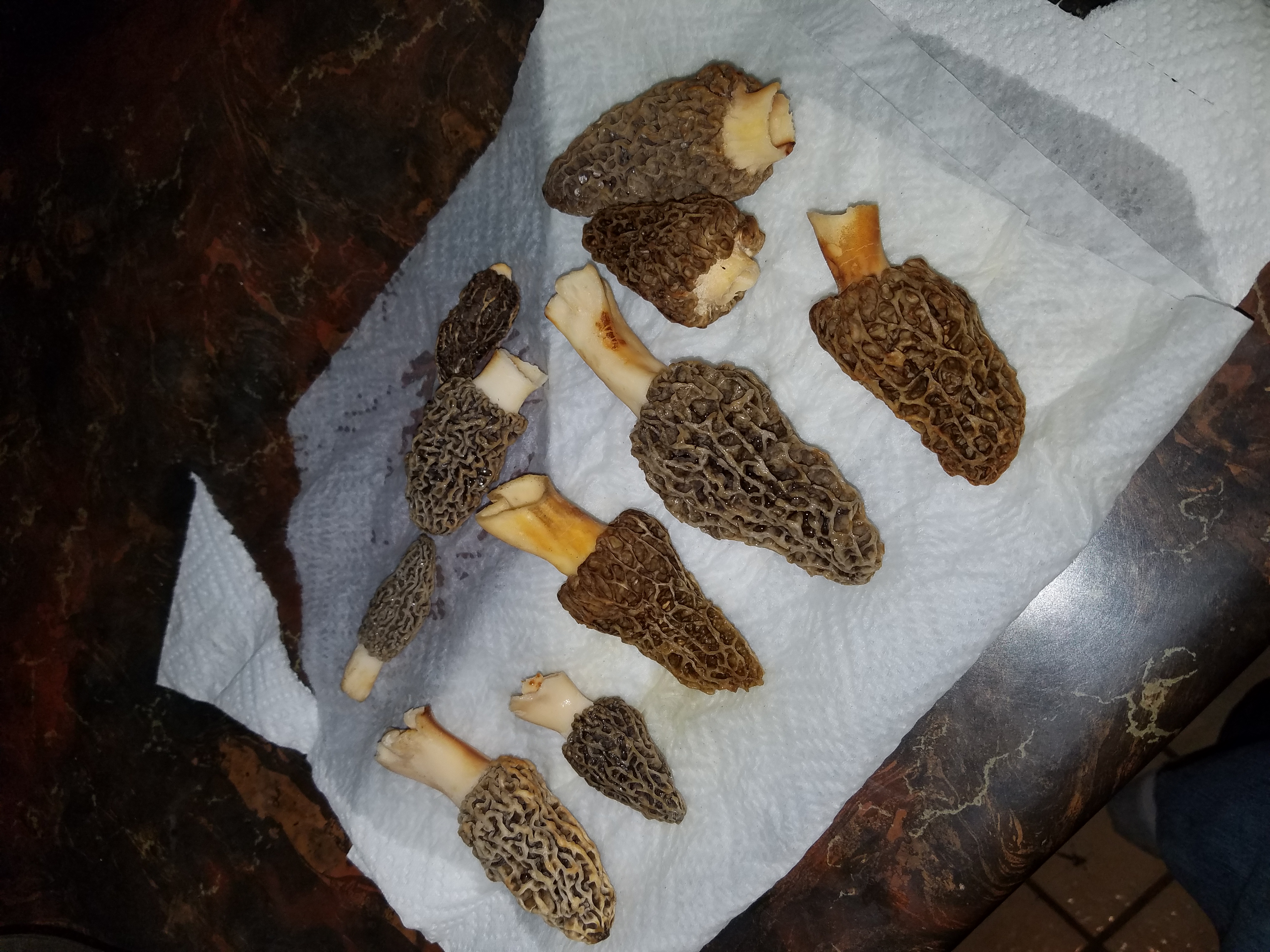 So yep we walk around and find Morels ranging from tiny pin heads or pins to nice healthy Morels but they werent all mature, so i do believe that we need about a week of warm weather to find some nice mature Morels!! Yum..Tastey :-)