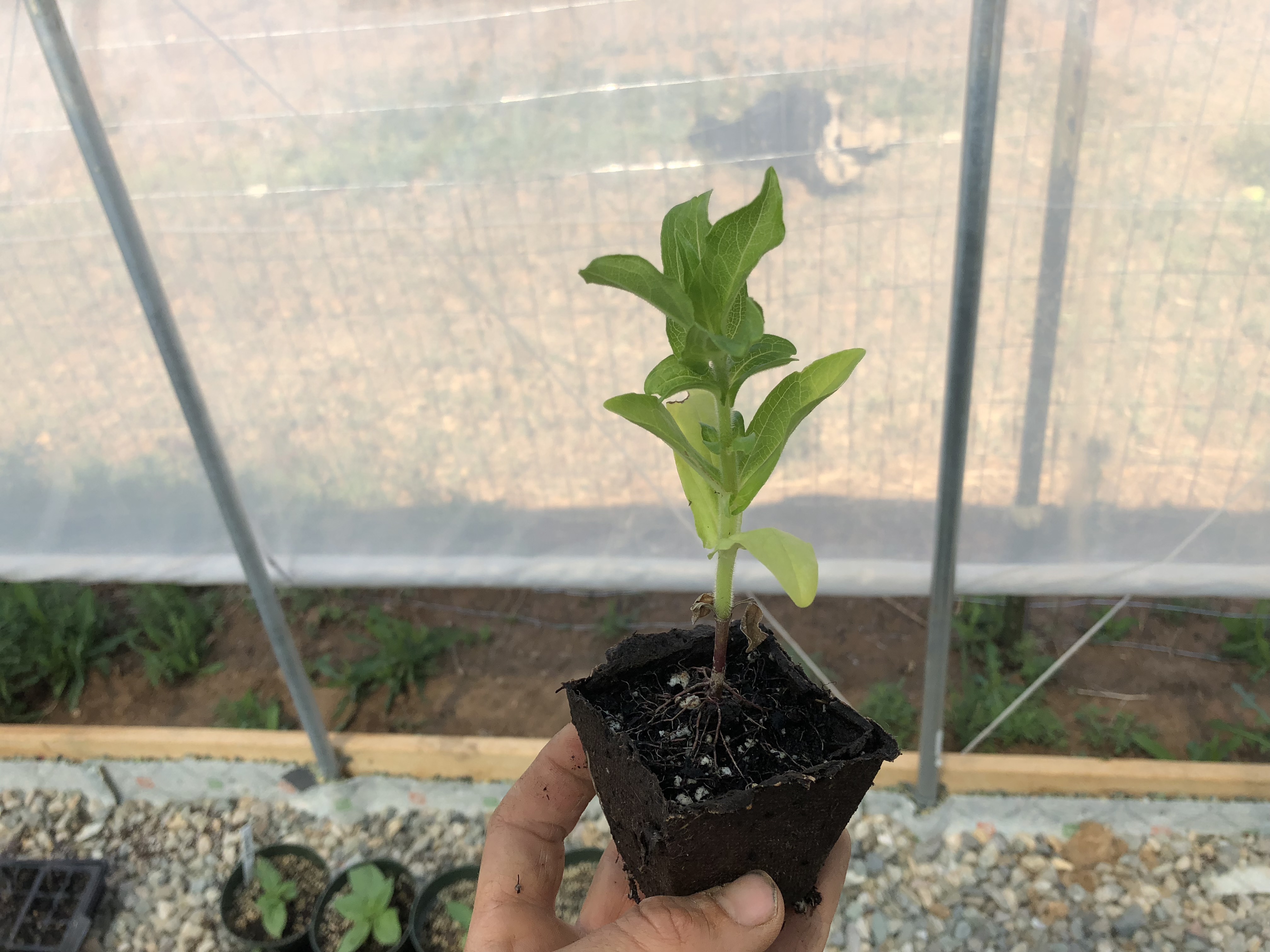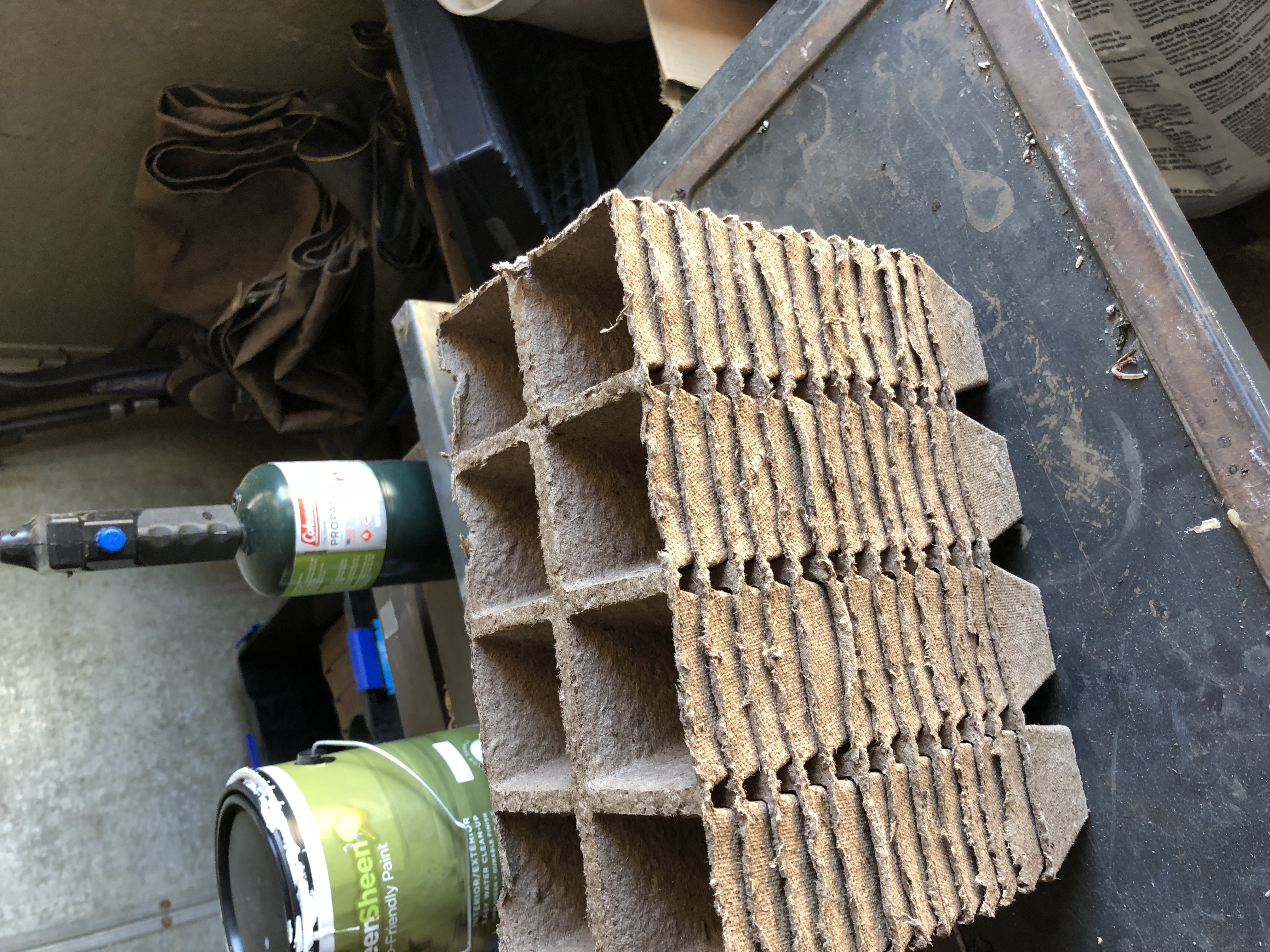 Cell packs are the worst. Besides being flimsy and marginally useful, they are really not reusable and definitely not recyclable. My mom found these 3" x 3" peat pots and we tried those instead. They work great and our customers at the farmers' market appreciate them as well. You can plant the entire pot in the ground for minimal root system disturbance (although I usually tear the sides back just as a force of habit). Sorry for the crooked picture!