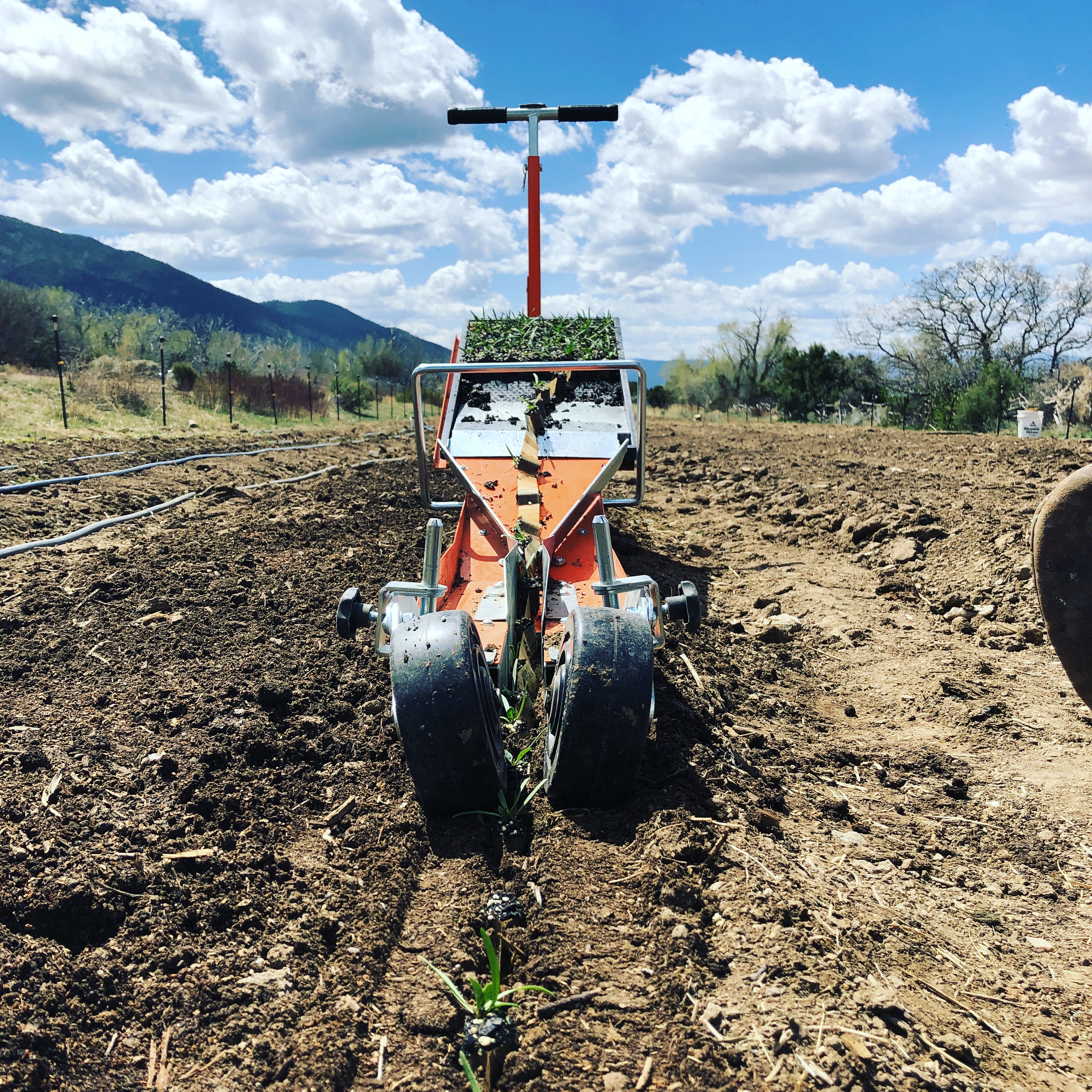 This machine is great, it uses cardboard, 264 cell plug trays that break apart into a chain and run through the machine to be transplanted perfectly (theoretically) into the field. It doesn't work for everything but it is pretty amazing and really cuts down on the plastic usage. Once the pots have served their purpose, they compost into the field or I can add them to my compost pile.
