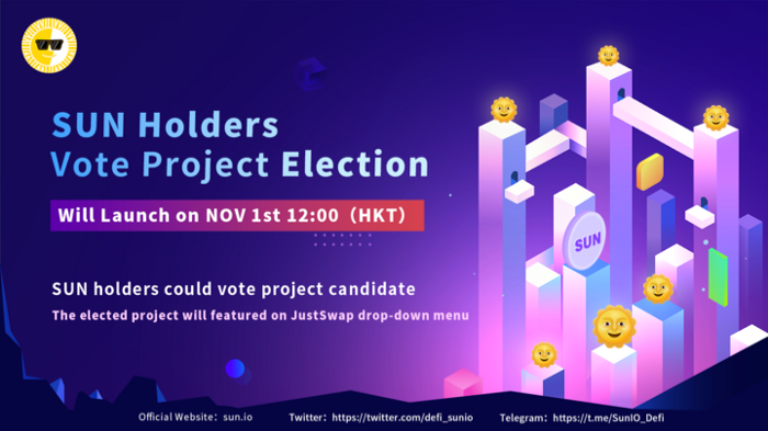 Voting will be open from 12:00 AM, November 1st, 2020 (HKT) to 12:00AM, November 7th, 2020. With their SUN tokens, SUN community members can vote for their favorite project participants and help their selected candidates to win a place in the JustSwap website, where the project can stay in the referral slot for 3 months, thus bringing more visibility to a community-chosen project.