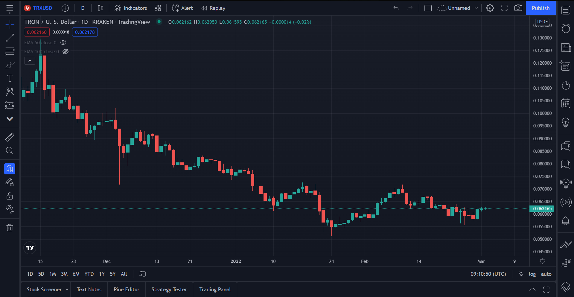 TRX current price on March 2, 2022erev (60)in #trx • 4 years ago The price of TRX on March 2, 2022, is $0.0621 #cryptocurrency #currentprice #tradingview