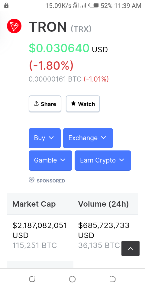 TRON is a Blockchain-based decentralized operating system based on a cryptocurrency native to the system, known as TRX. It was developed in 2017 by Justin Sun. TRON provides a decentralized virtual machine, which can execute programs using an international network of public nodes. The network has zero transaction fees and conducts ~2000 transactions per second. The present price tag of TRX is: $0.030369 and it's rated 17 on the coinmarketcap with a market cap of $2.19B as at the time of writing. (source: coinmarketcap.com)