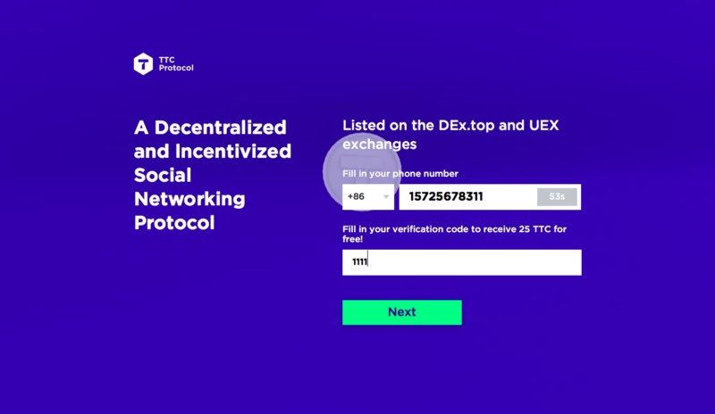 - Fill the Verification code to receive 15 TTC tokens,