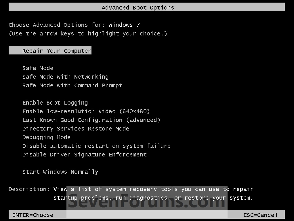 - Restart your computer and hold or spam the button F8 to open the advanced startup menu. it will look like this: