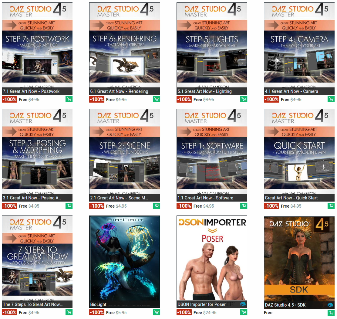 If you look closely you'll see some of those items are from the first lesson. Many of them are also detailed tutorials that can empower you quickly in becoming skilled at using Daz products.