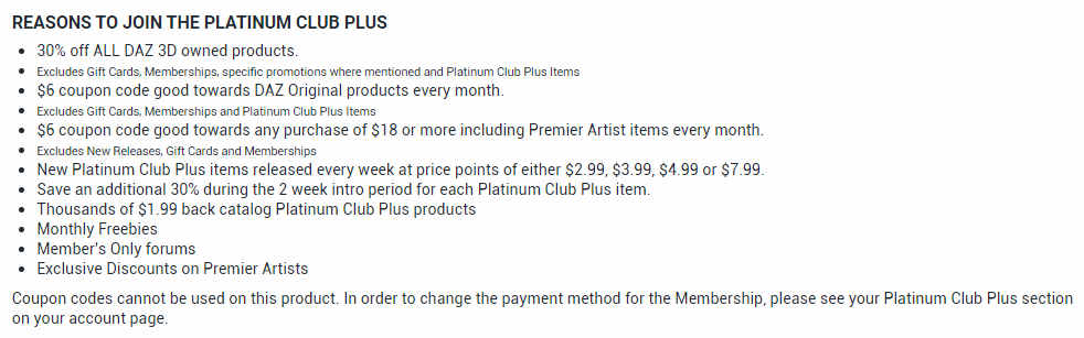So in general if you are new to Daz and you are planning on spending more than $20 then it is a really good idea to consider getting a membership in Platinum Club+. Depending upon how much you plan on spending it will more than pay for itself.