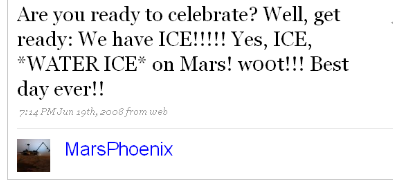 Mars Phoenix Lander is a NASA JPL (Jet Propulsion Laboratory) vessel designed to know about Mars's weather, especially whether it is suitable for living. The tweet above is probably the first tweet sent from a planet outside the Earth.