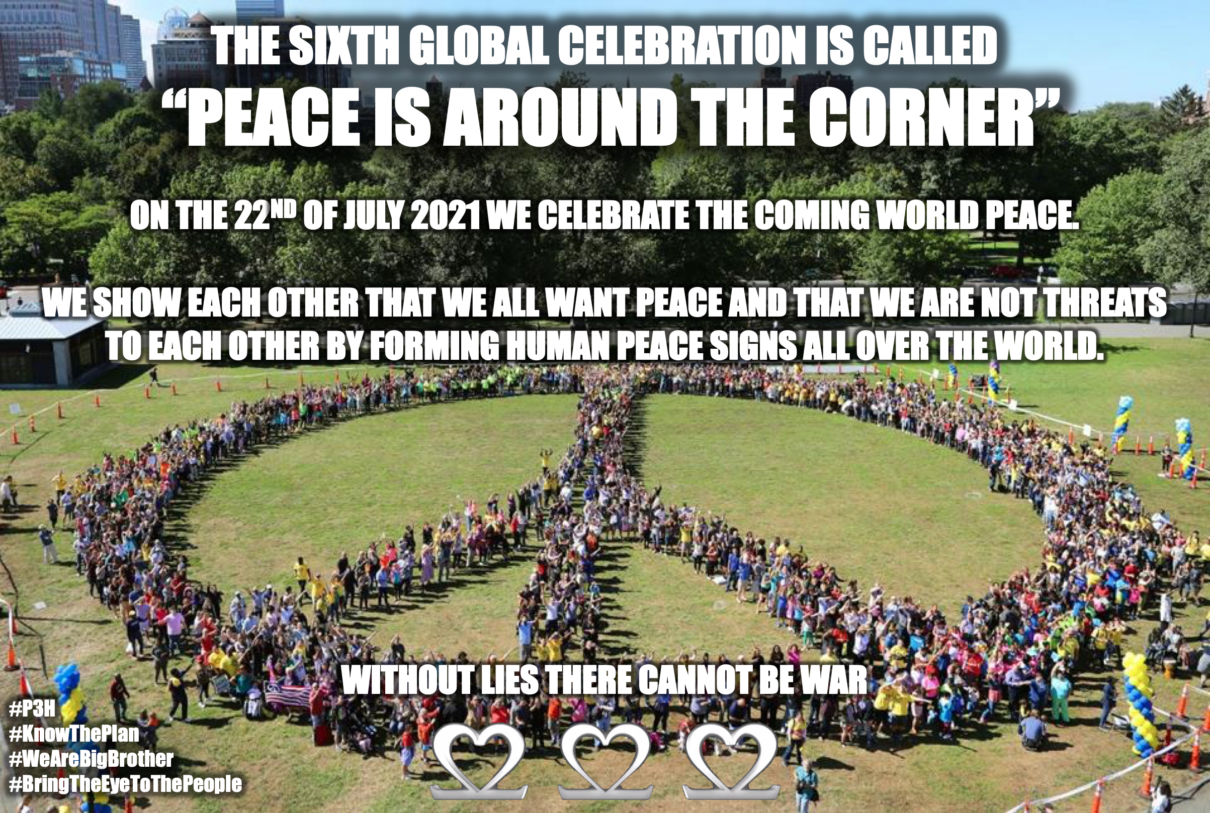 We will celebrate and we will form human peace signs all over to world to show each other that we all want peace and that we are not threats to each other.