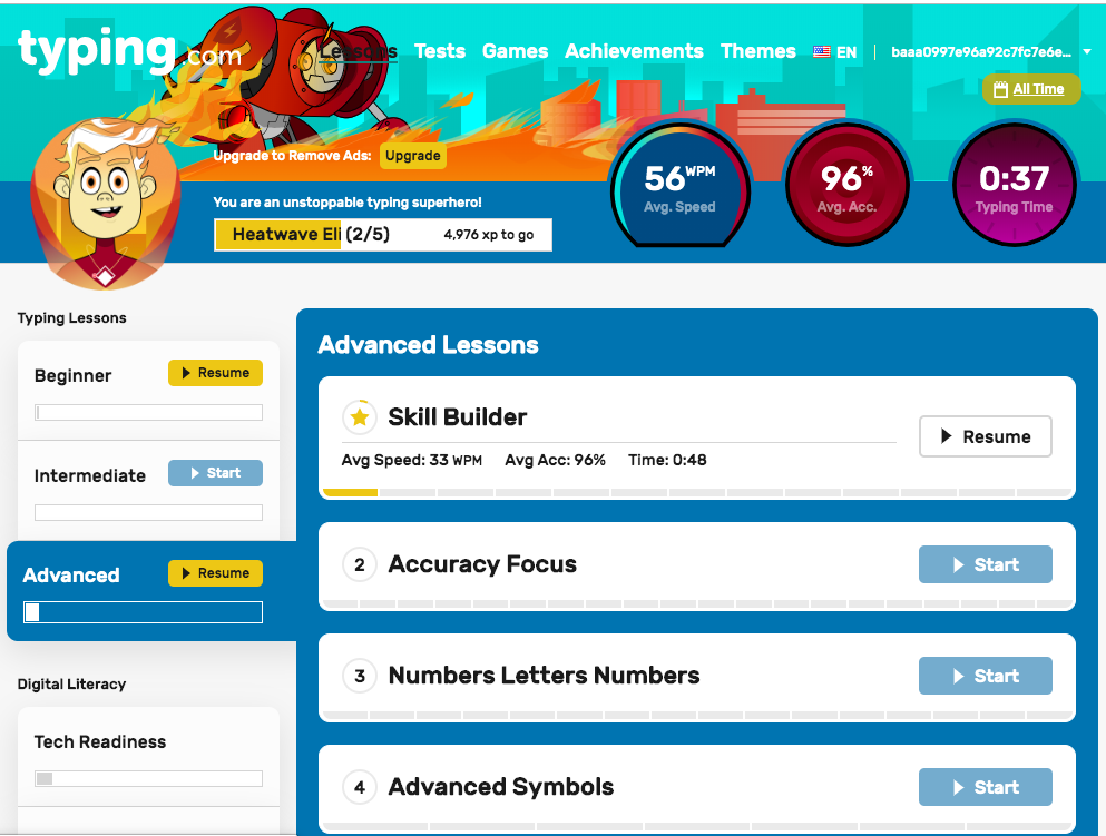 - Different levels (normal and difficult, now there are Beginner, Intermediate, Advanced ) for you to choose then increase your WPM step by step