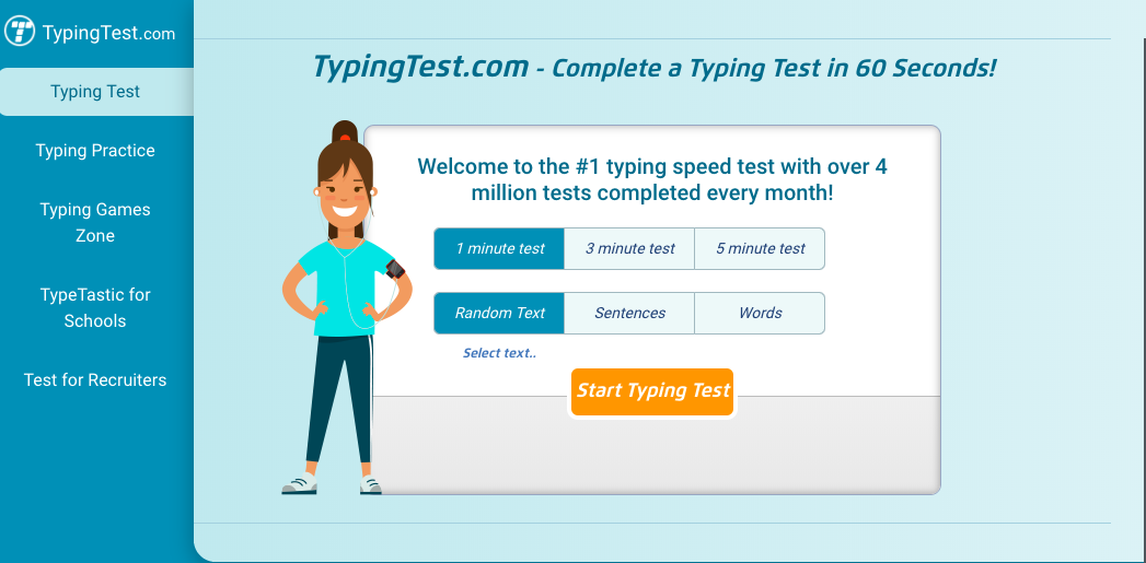 A classic website for you to practice typing in one minute, 3 minutes or even 5 minutes, there are also have other sections like Typing games and TypeTastic for schools and so on.