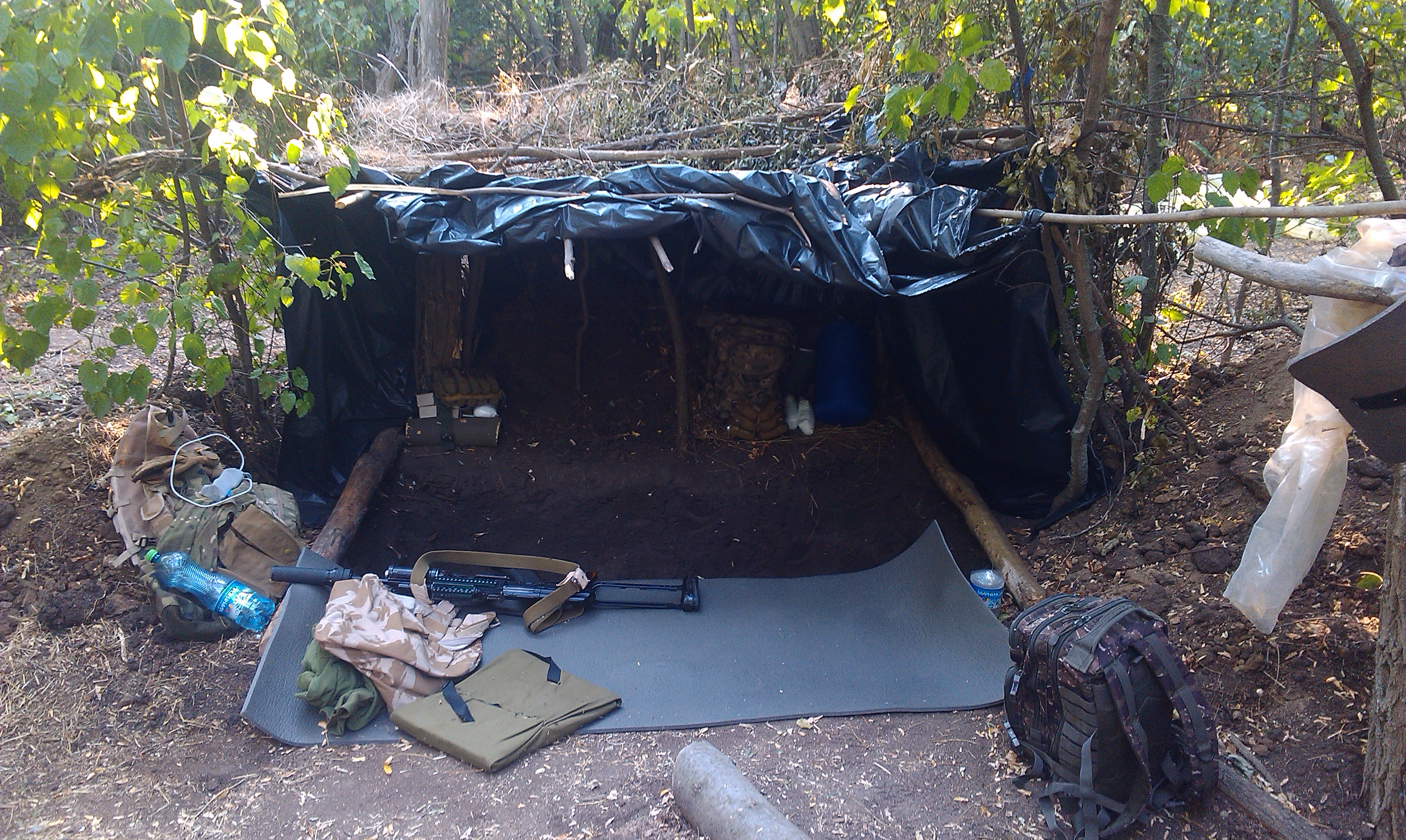 Our observation point was located in the forest at the top of the hill. Before our nearest fortifications there was a mile and a half. I was not there when the group came into the forest, I arrived there only in two weeks. Then I was not on the positions I was still fiddling with documents in the military enlistment office.Just our group took "neutral territory" -a piece of forest beyond the control of the enemy, the so-called "gray zone". In the immediate vicinity of the enemy, the primary task is to dig in and quickly disguise the observation point so that we can not be detected by the enemy's UAV.My predecessors began digging around and dug three pits one and a half meters deep, a meter wide and two meters in length. To be able to sleep and not be afraid of sudden shelling. Later we went deeper and even more disguised our post. The task is rather difficult, the land that there was a mixture of clay and chernozem which at a high temperature just turned into a stone, it was necessary digging with a pick, at the same time digging in only a few centimeters, and then throwing the earth to the surface.Everything happened in the summer and the temperature was about 35 degrees. Do not forget that you are in camouflage pants and boots, the armorlets have all taken off and remained just in T-shirts or undressed completely, working with a bare torso. Remove the bulletproof vest is a bad idea and a violation of safety techniques, but I I do not know people who will be able to regiment in the heat, dig a stone ground for many hours, and then go on to the post.But still we digged a little and could start to disguise. The pit near which I slept was covered with a piece of black oilcloth. It protected me well from the sun, and then from the rain. On the roof of my dwelling I sketched many branches and leaves, also hid everything hang under the oilcloth.At the edge of the pit, I spread out the tourist karemat, and made a pillow whith themen `s sweater and jacket. At night I spread the sleeping bag and it turned out quite comfortable. On the other side of the pit, I put backpack and ammunition, as well as all the electronics, telephone, power bank for charging the phone and etc.The weapon was always near the hand. Well or almost always. How would it be cinematic not to have to sleep in an embrace with a weapon. Incidentally, they started building a dugout. That's actually all for today. As practice shows, if there is a desire, a person can live anywhere...