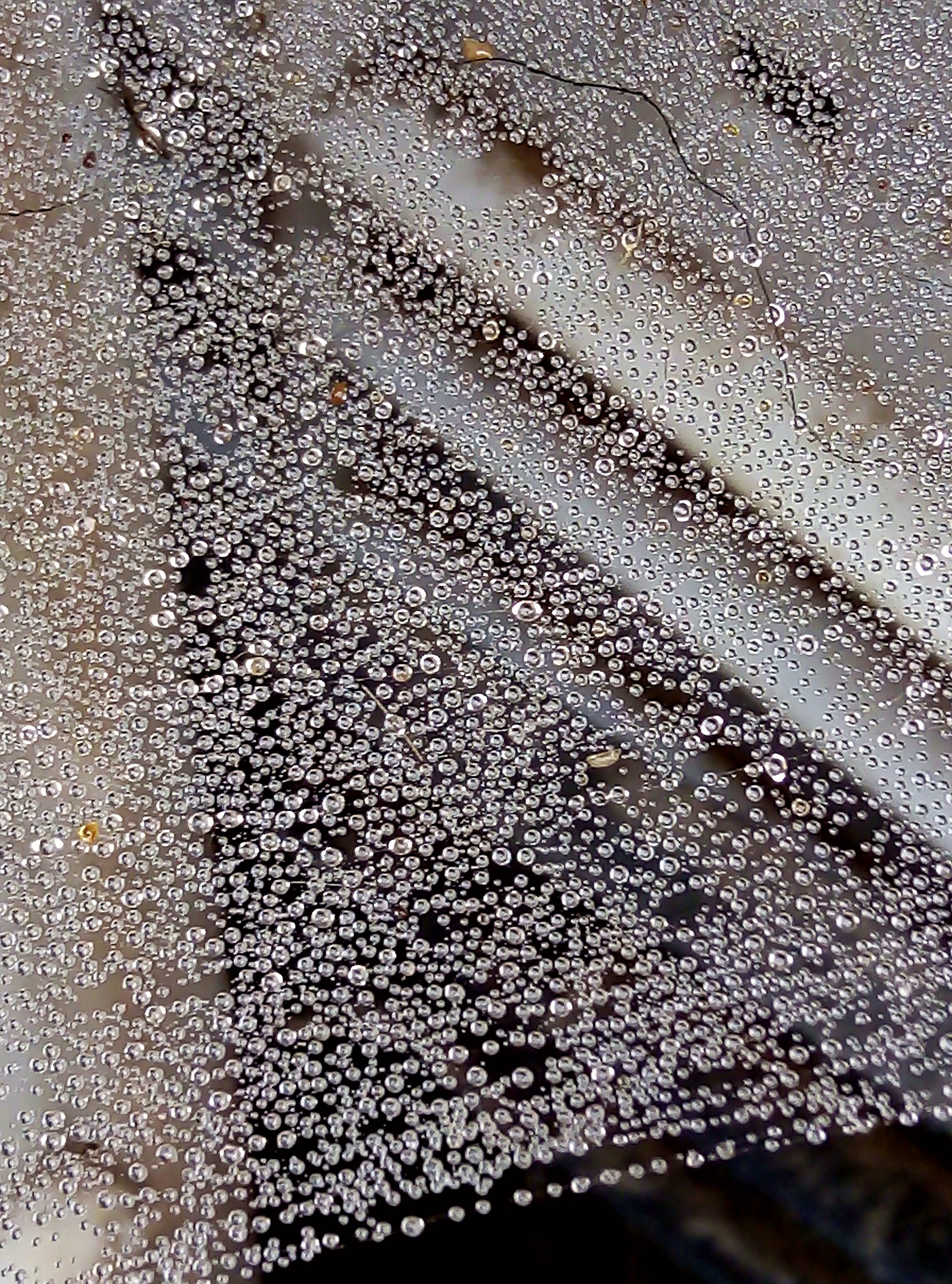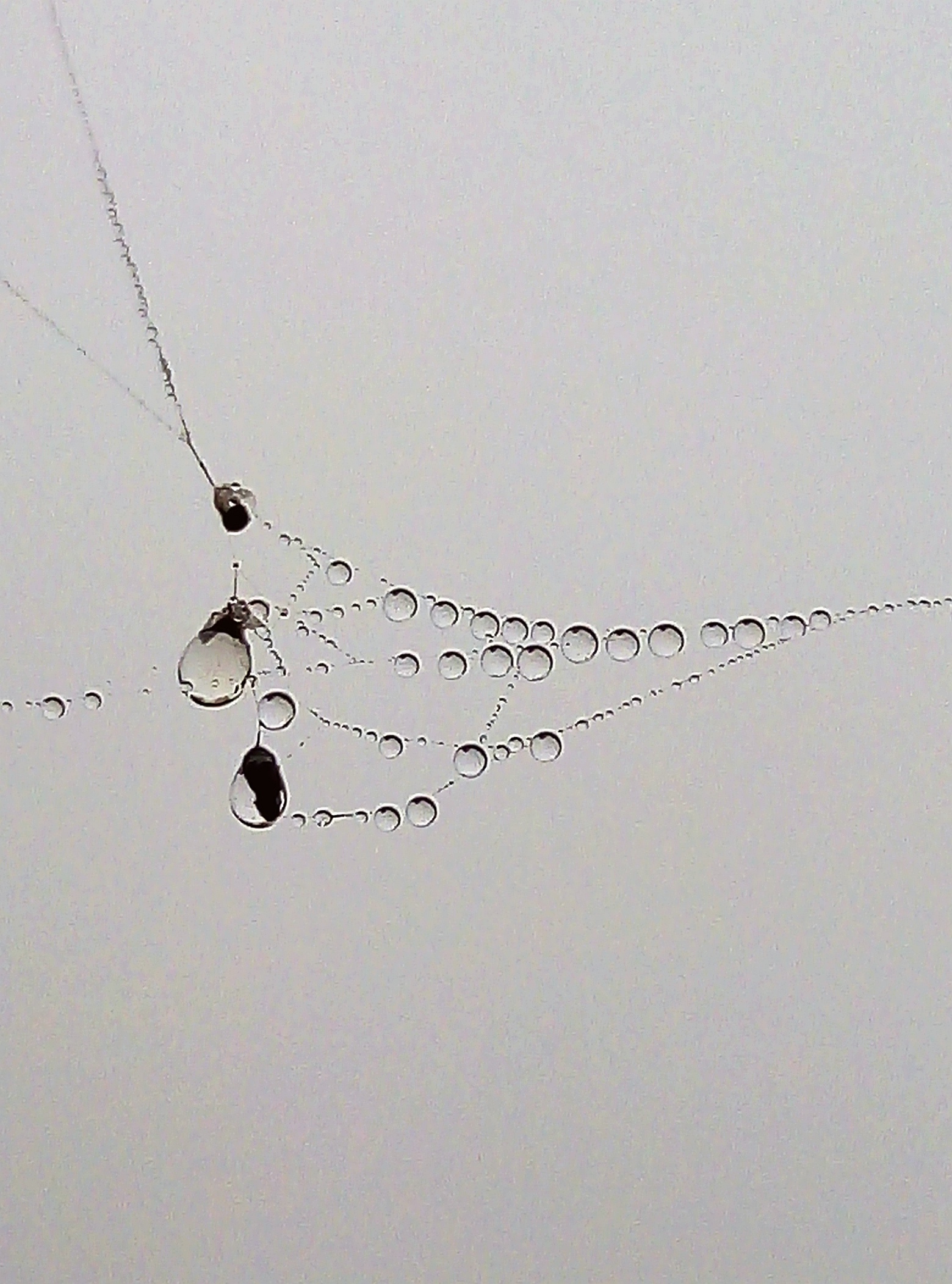 Зранку завжди коли я прокидаюся визираю до віконця, подивитися яка погода на тебе чекає , чи світить яскраве сонечко. Так і сьогодні після солодкого сну поглянула що ж там за вікном. Сонечка, та його промінців я там нажаль не помітила, але звернула увагу на чарівне намисто, яке утворилося на павутинці після нічного туману.