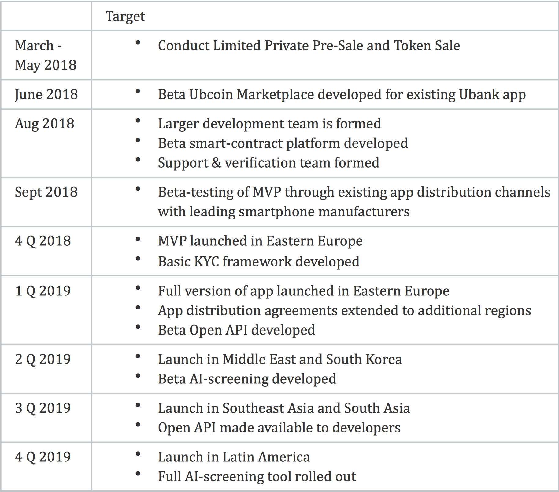 - Burn program - 5% of Ubcoin fees from user transactions are burned to reduce token supply as business grows.