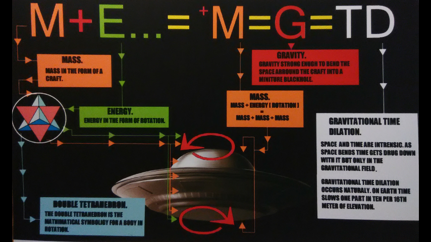 Faster and faster the u.f.o. would spin. Becoming more and more massive distorting time further and further. Until just like sn 1987a. The space around the u.f.o. can no longer support it folds in on itself and cause what is being called " black holes". This exact amount of stretching is well known in the field of quantum physics as the plank limit. mass , energy , spaces , even time it's self has plank limits. Plank limits have max amounts and minimum amounts. The plank limit to the smallest amount of time is 10 to the negative 43 seconds. That is a 10 with 43 zeros after it. Any amount Les than that no longer resonates inside the limits of this locality. To be in this locality or "dimension" is to resonate at its frequencies. To be in another dimension is to resonate in its frequencies. Because of this I propose" just as mass is equal to energy. Just as space is intrinsic to time. "Velocity" is Equal to "resonance'.