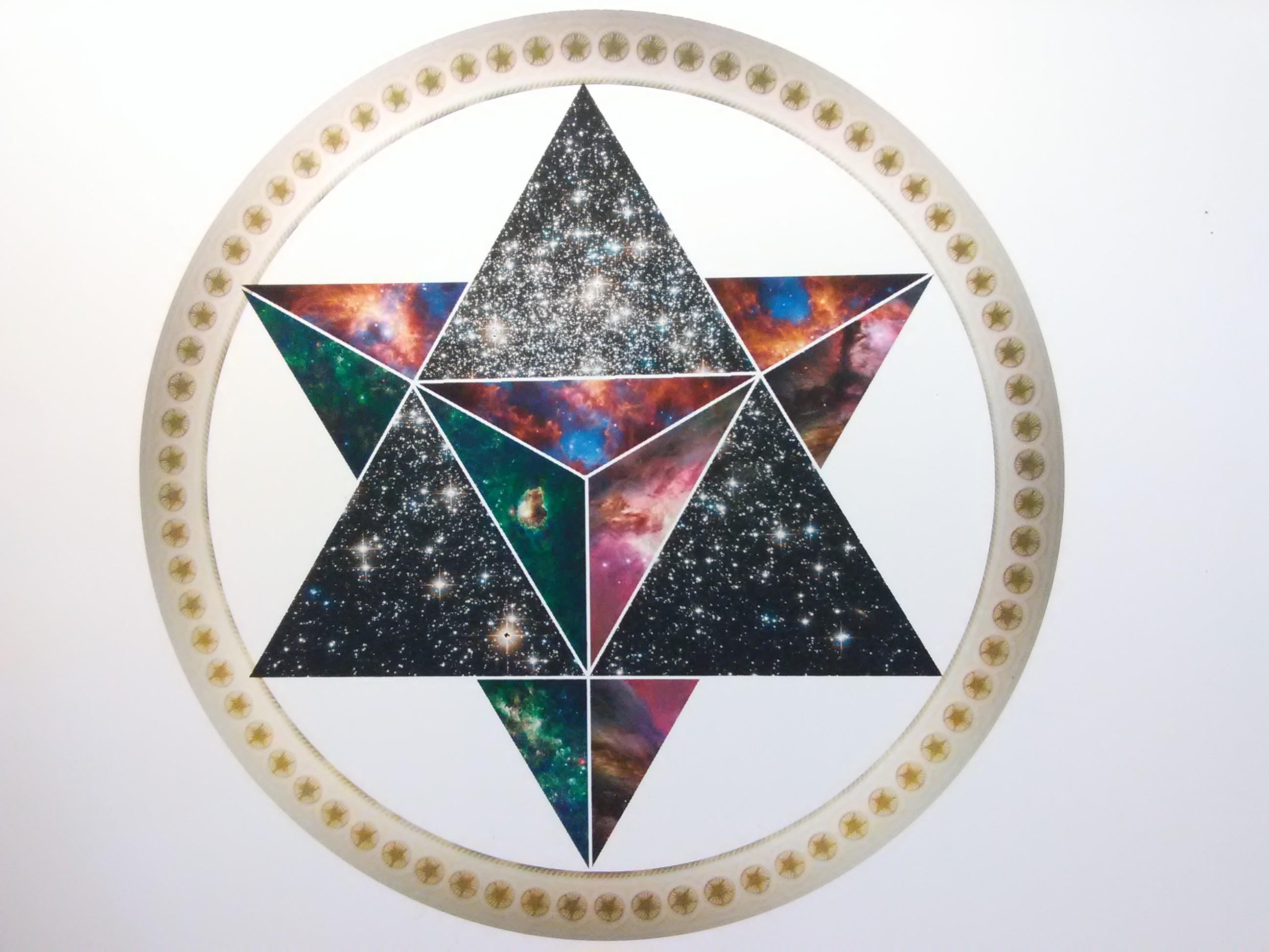 In the field of Hyperdimensional physics a mathematical symbology is used. it is called the double tetrahedron. The double tetrahedron represents a body in rotation. Two interlocked tetrahedron. "One representing mass" and the other energy. "Energy" in the form of rotation. The circle around it symbolises the rotation.