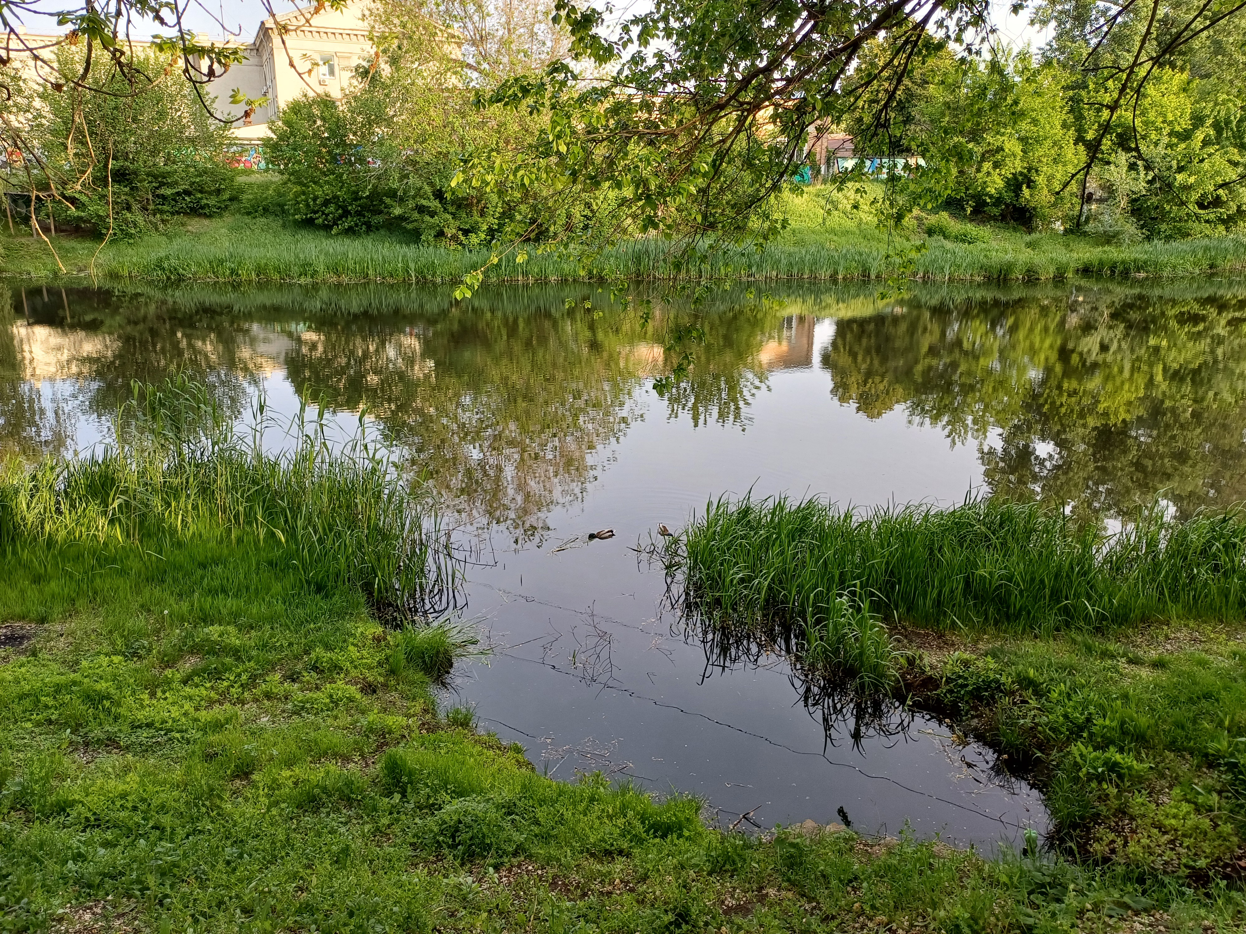На шляху ранкової пробіжки-прогулянки зупинявся тільки біля качечок. Було дуже мило спостерігати за цією парою птахів, які майже під самим берегом у канаві влаштували для себе купання.