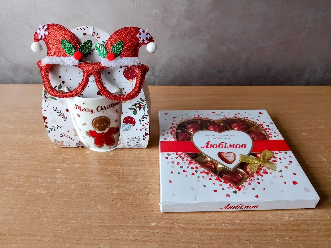 Вдома дитині не терпілося дізнатися що ж приховує в собі подарунковий пакет у вигляді усміхненої коали. Відкривши його, Даринка знайшла коробку цукерок "Любімов" і дуже гарну різдвяну чашку, прикрашену кумедними святковими окулярами.
