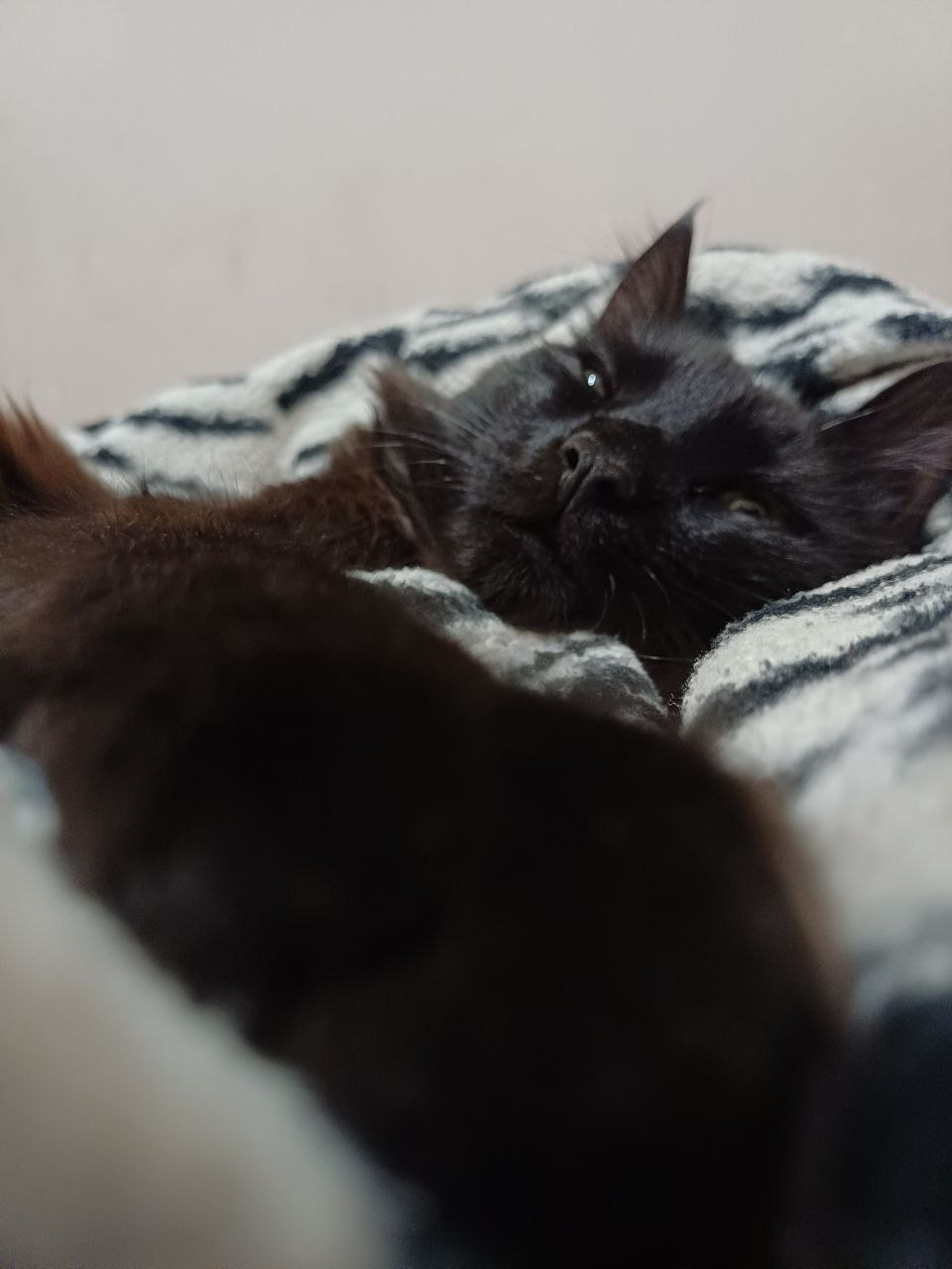 Цього разу в думках вже думала її прив'язувати. Наш котик муркотик ще досить маленький і в нього маніакально нав'язливі ідеї щось тягати в зубах, чи то хліб, чи то пакет з чимось, ось нещодавно розсипав мені так землю для квітів по всій квартирі.