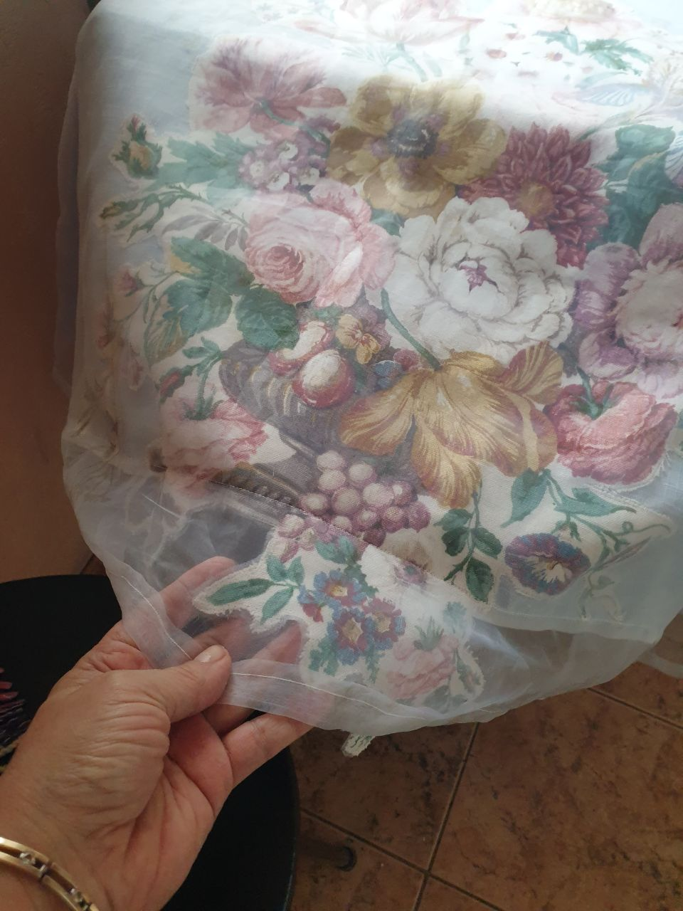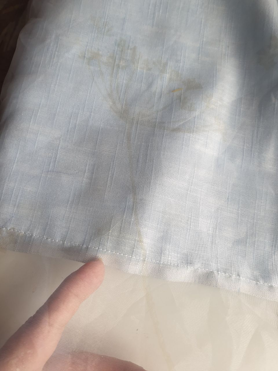 Є в мене старенька шторка з органзи, її по краю донька колись праскою припалила.