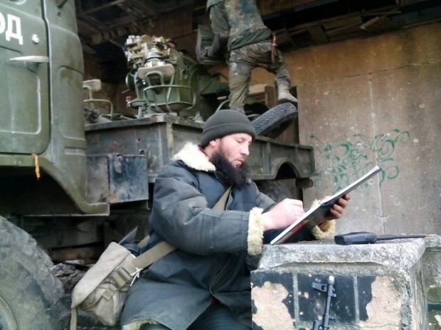 Після Майдану росія вторглася в Крим і почалася війна на сході України. Володимир Безрукий воював у батальйоні "Донбас". Поки відслідковував ворожі позиції, малював краєвиди, терикони, шахти. Сам він стверджує, що часто малював просто під час обстрілів, в лежачому положенні.