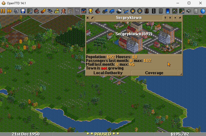 If you carry out too many earthworks within a city’s limits, the city may prohibit building stations on its territory. This will become a serious problem — you’ll have to wait an unrealistically long time for permission. You can slightly improve the situation by planting trees within the city’s boundaries.