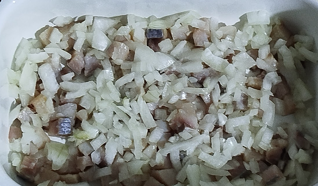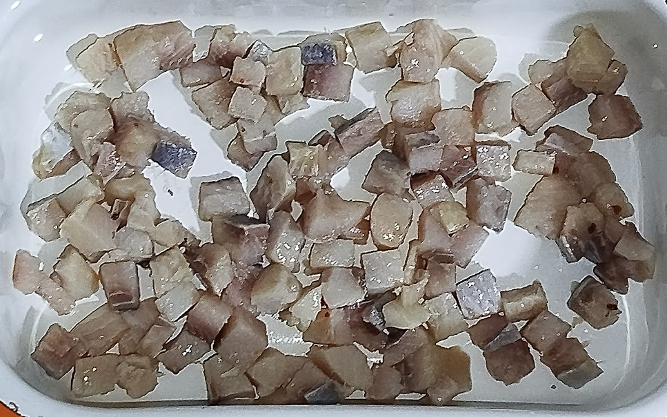 - Оселедець (нарізаний кубиками) – 1 контейнер