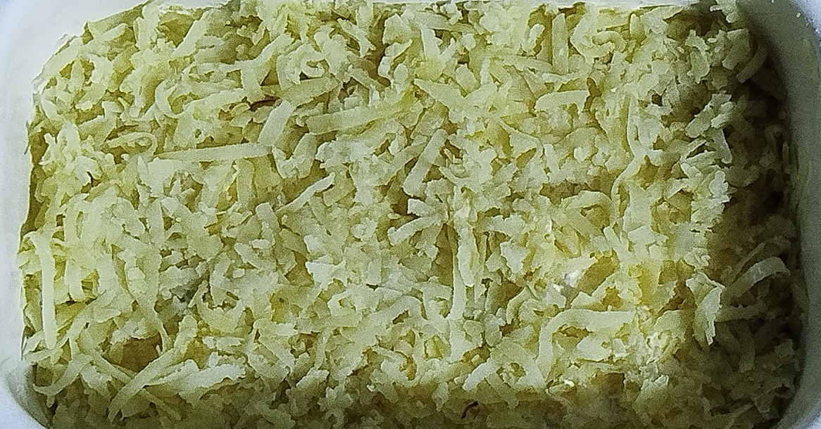 | наступний шар - картопля, яку натираємо на терці | знову змащуємо майонезом, хто більше хто менше, можна присолити |