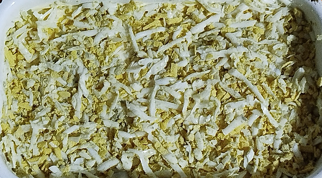 | натираємо на терці яйце | і знов майонезом, можна присолити |