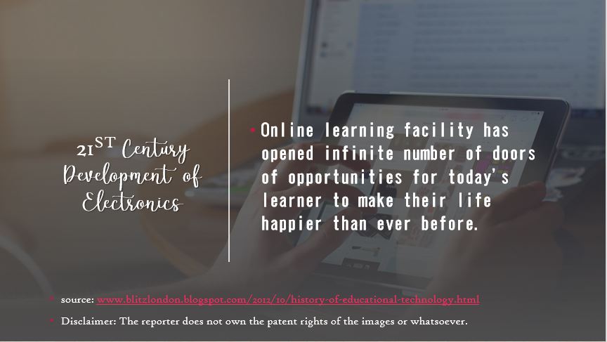 Anyhow, let us get things started! Since I was tasked to report about the History and Development of Educational Technology, I checked the source that given to me by our class professor. It was really informative to the point that it reminded me of the lessons I learned way back elementary years up to college. I think you would agree with me on this one once you are done reading all the information that were shared.