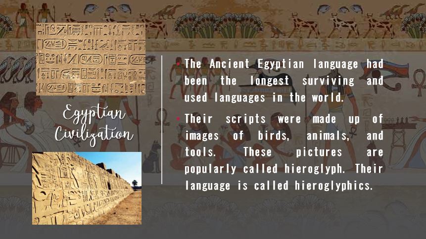 At this point, system of writing had been introduced through pictographs such as hieroglyphs from the Egyptian civilization. Well, honestly speaking, I could not imagine still not having the English alphabet and use pictures instead to communicate to others in written manner.
