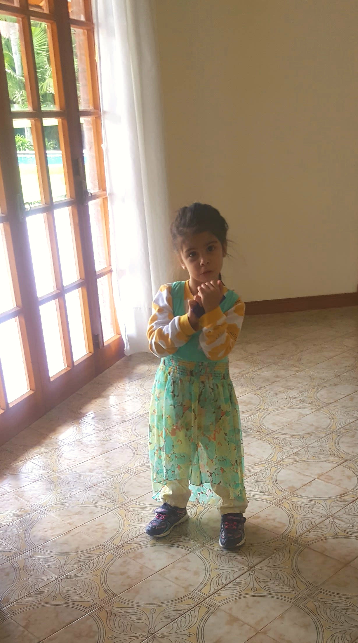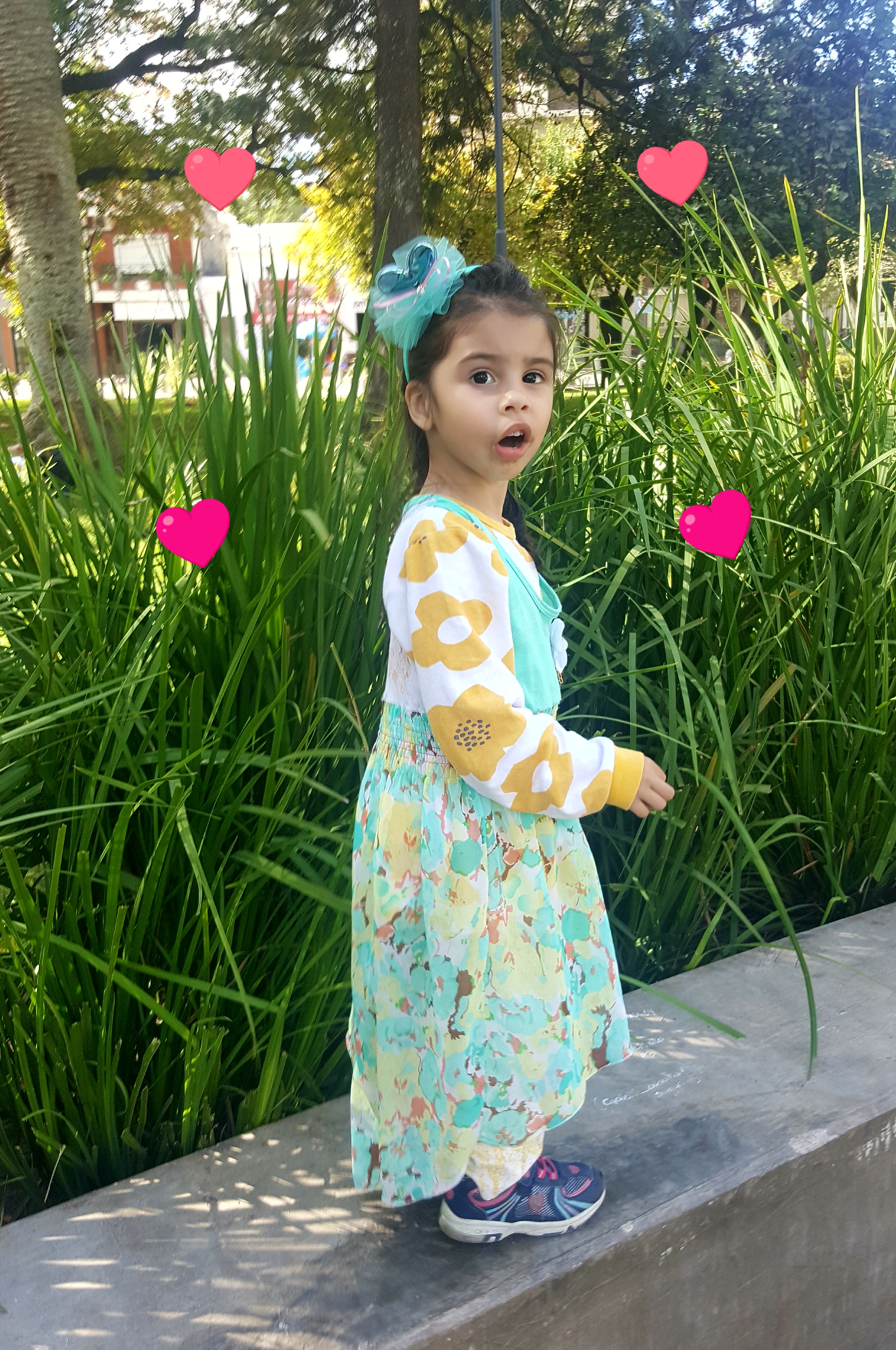 She's been feeling better and it was a beautiful day so, we went on a trip to town. Anyway, we are passing from summer to autumn and the temperature is not so warm. But she wanted to wear a summer dress so I told her she was gonna have to wear the dress on top of her sweater and pants and so she did 🤣😂😆 it was funny for me but it shows me that as little as she is, she can negotiate and has a strong will. This is her wearing all that before going out 👇