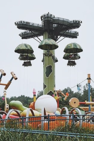 I experienced the RC Racer, such an extreme ride; took pictures with Jessie on the Barrel of Fun and rode on the Toy Soldier Parachute Drop with my baby bear.