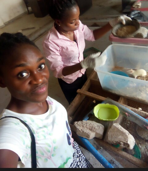 After 2hours of raining my class rep declear no lecture again.I decided to follow my friend to animal house because am not yet good, in how to take care of the white rat and how to inject them with extraction.
