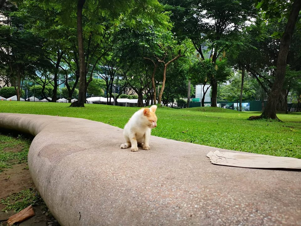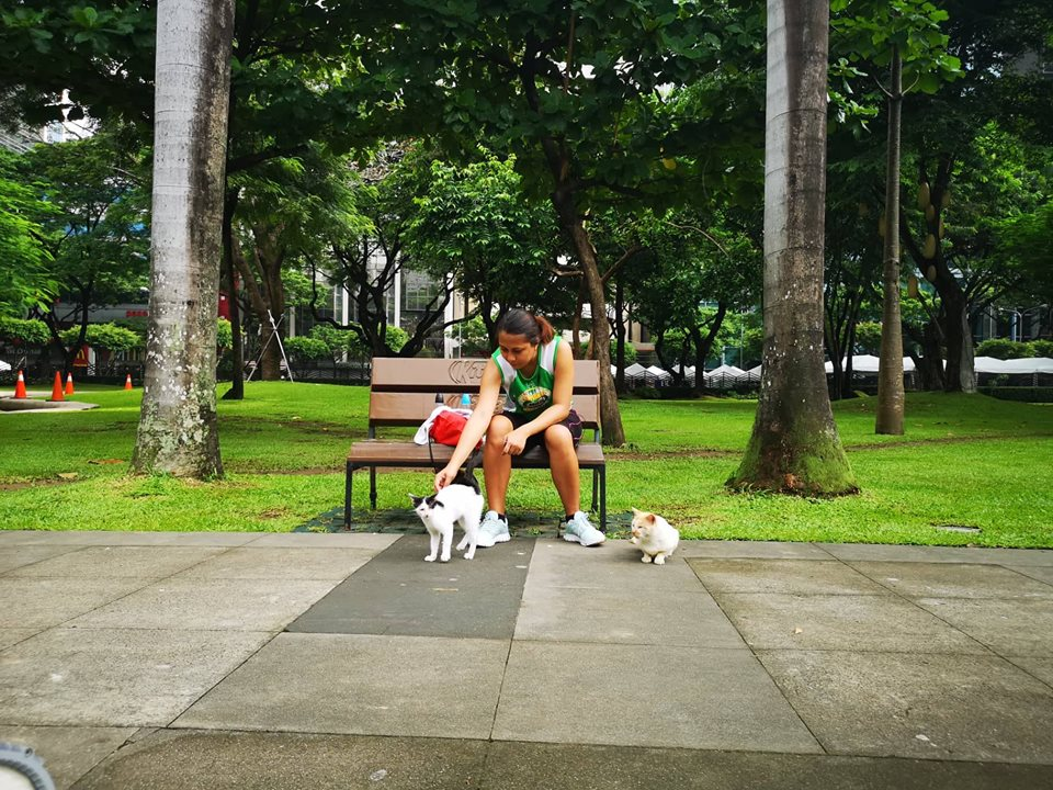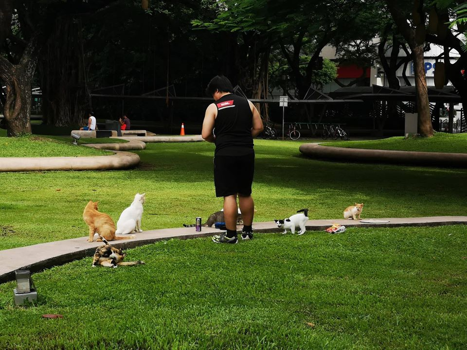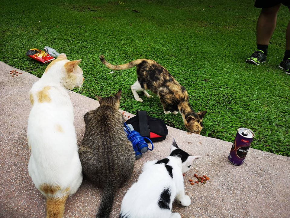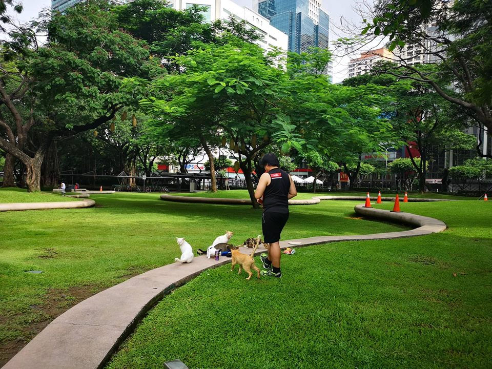 Then another jogger caught their attention and he gave these kitties a snack. He held a small pack of cat food and gave them some. It touched our hearts that some people still do good for stray cats like these. A gesture of love and compassion to animals is very heat warming to watch.