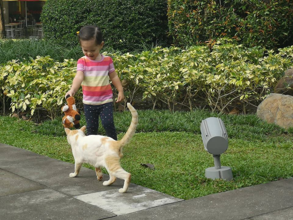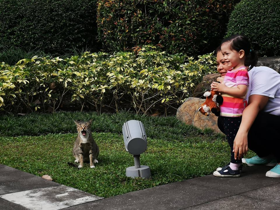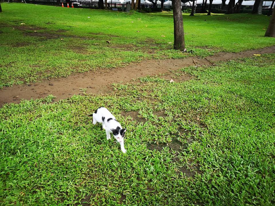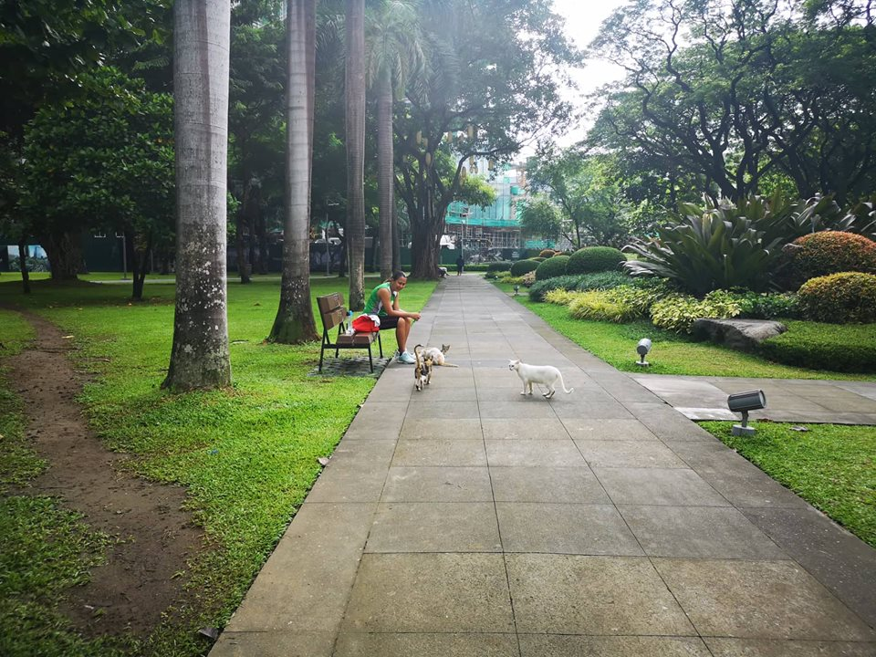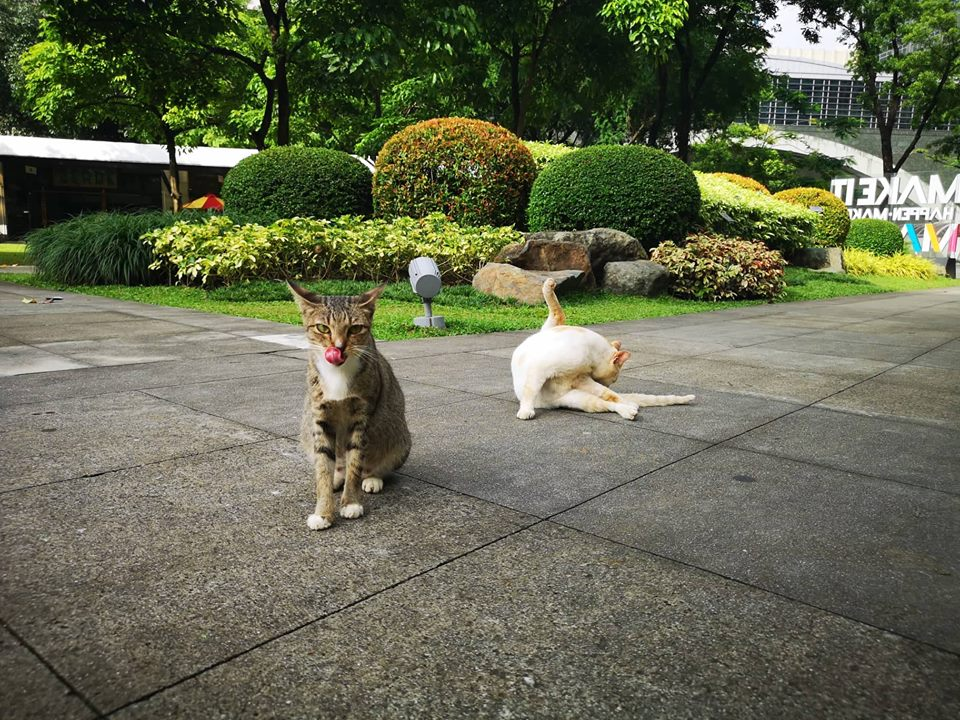 Then another jogger caught their attention and he gave these kitties a snack. He held a small pack of cat food and gave them some. It touched our hearts that some people still do good for stray cats like these. A gesture of love and compassion to animals is very heat warming to watch.