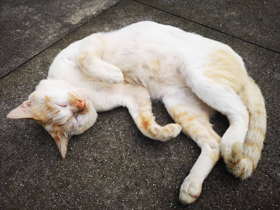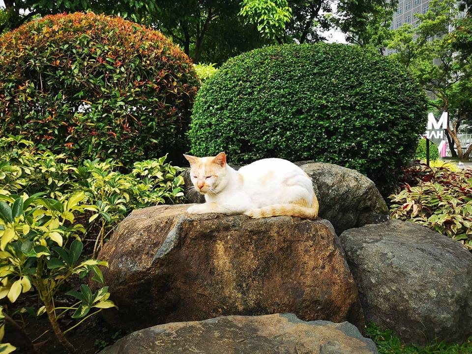 We sat in one of the benches we saw this sleeping cat and I went ahead and pet it. He did not mind at all. He was quite a sweet boy. He started to lie on his back and as if asking for a belly rub.