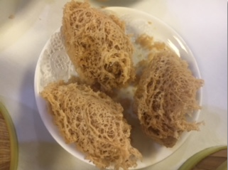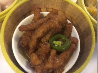 Spicy Hot Chicken Feet and a sweet flavored baked bun of some sort.