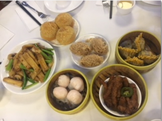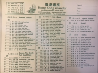 After being seated, we first ordered our tea, which was a choice of Oolong, Jasmine, Chrysanthemum, Bo Lei (a black tea), and Sau Mei (a white tea). Then we ordered our choices of Dim Sum both from the menu and from what is available on the push carts and what other tables are having.