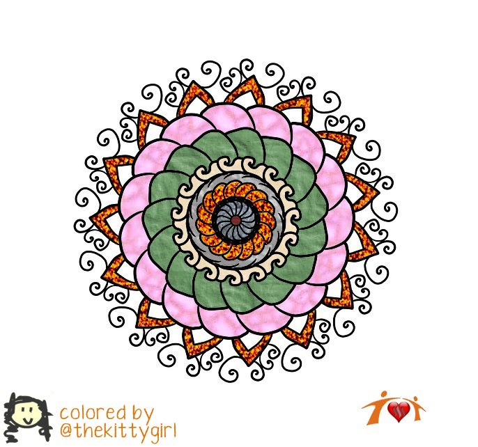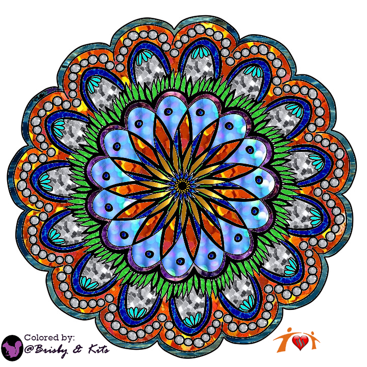 Here's the design that my girls and I colored. My eldest chose most of the colors and my youngest had fun picking out patterns. (They both abandoned me when it came time to fill in the tiny details...😂)