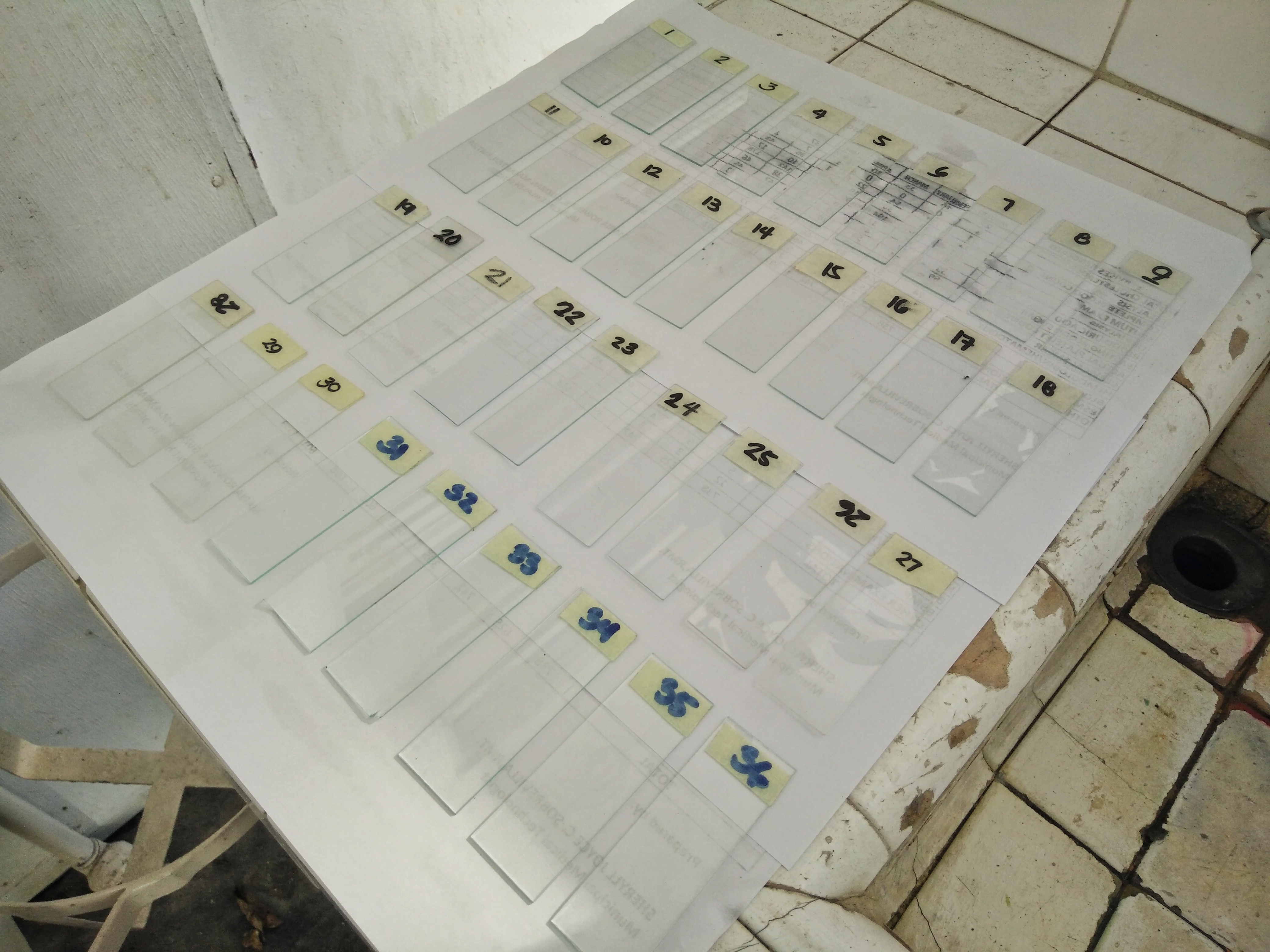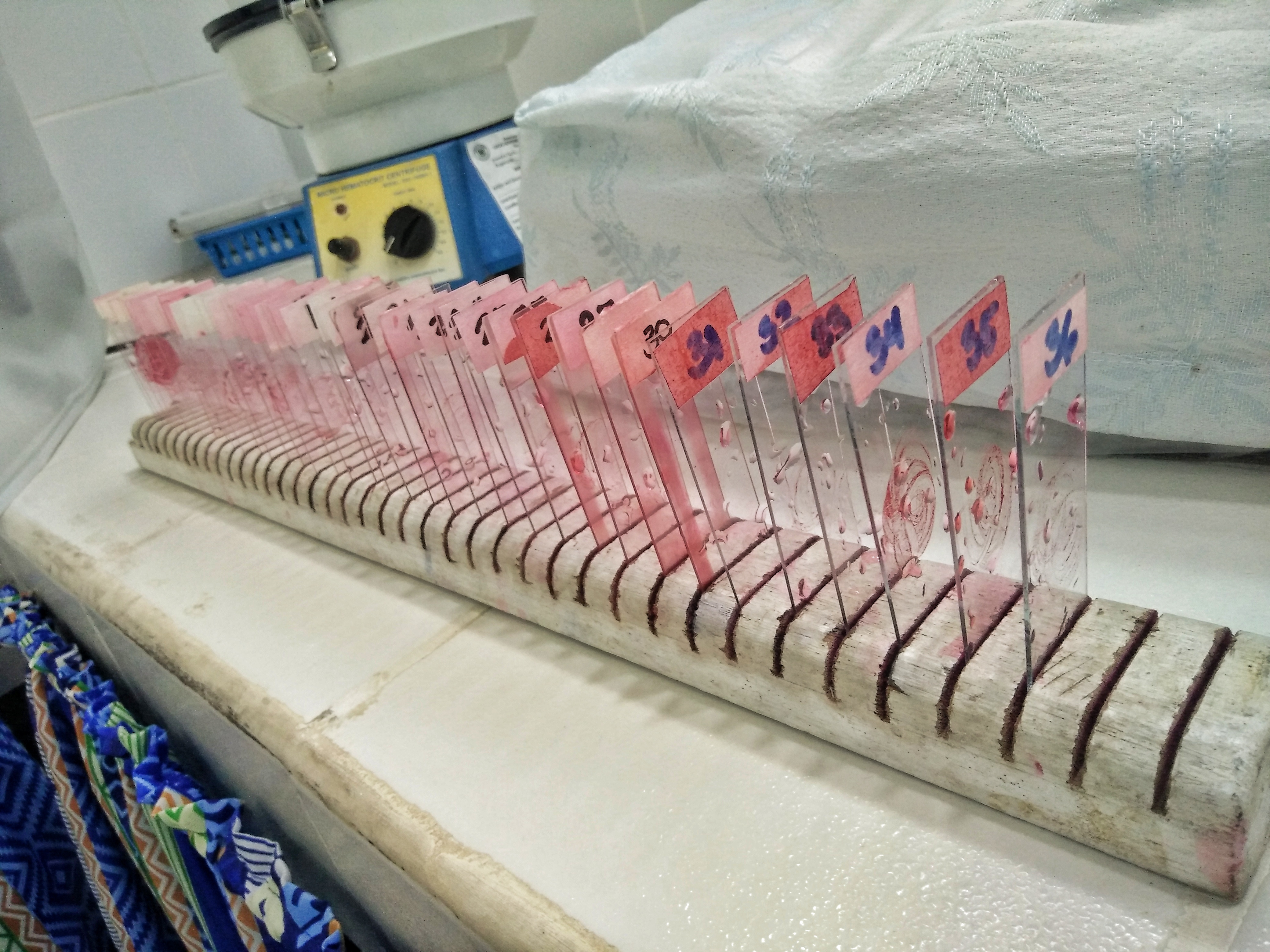 Each specimen is placed on a slide, properly labeled, and air dried to fix. A midwife does the job. I am not allowed to be the one getting specimens from the ladies ofcourse.