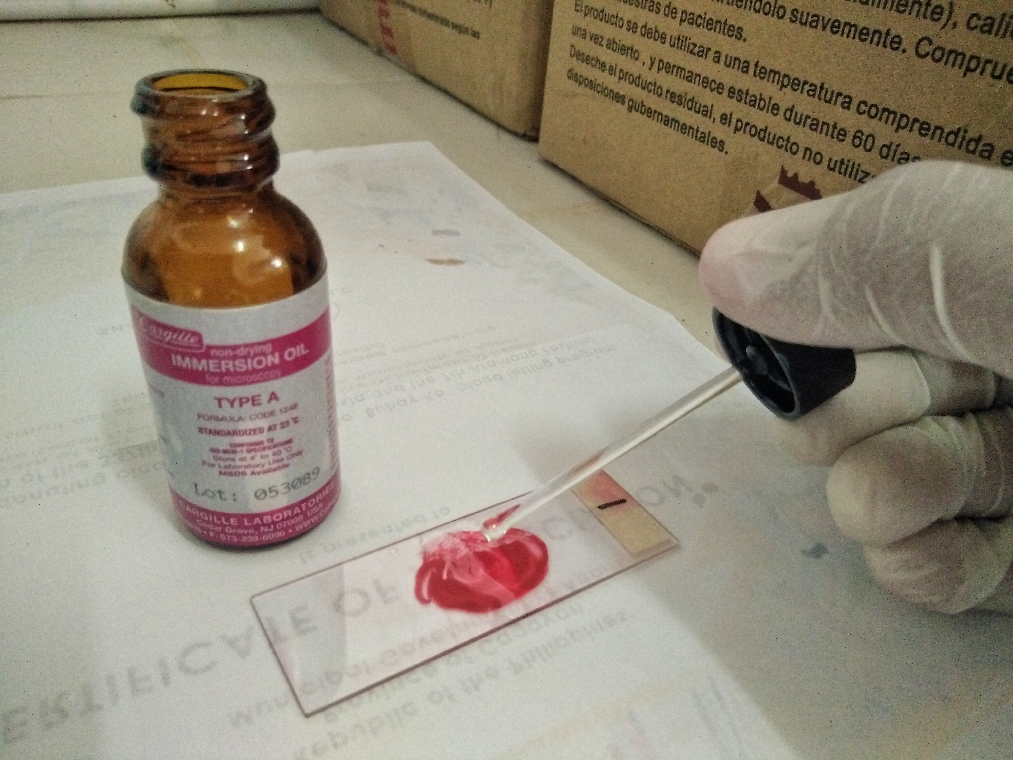 Before reading it under microscope, I place a drop of immersion oil to vividly view the bacteria.