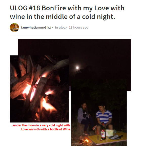 ULOG #18 BonFire with my Love with wine in the middle of a cold night.