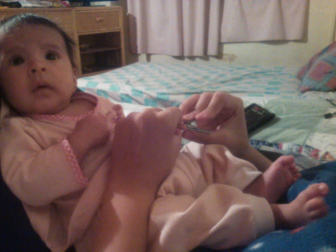 At the beginning, it bothered her that he would grab her little hand or feet to cut her nails, and she had to make him sleep, she got desperate and bothered and ended up crying. However, I thought, if I keep doing it when she is awake, she should get used to it, and that's exactly what I did and that's what happened, that's why I took some pics while I was doing it and I was impressed by how relaxed she was while she cut her nails .