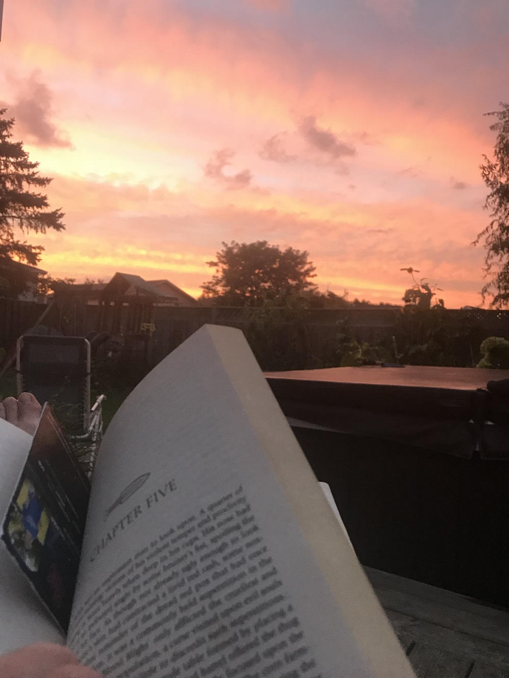 I even managed to get some down time with my book which is almost done.....as is the summer and these skies. Any suggestions on what to read next?