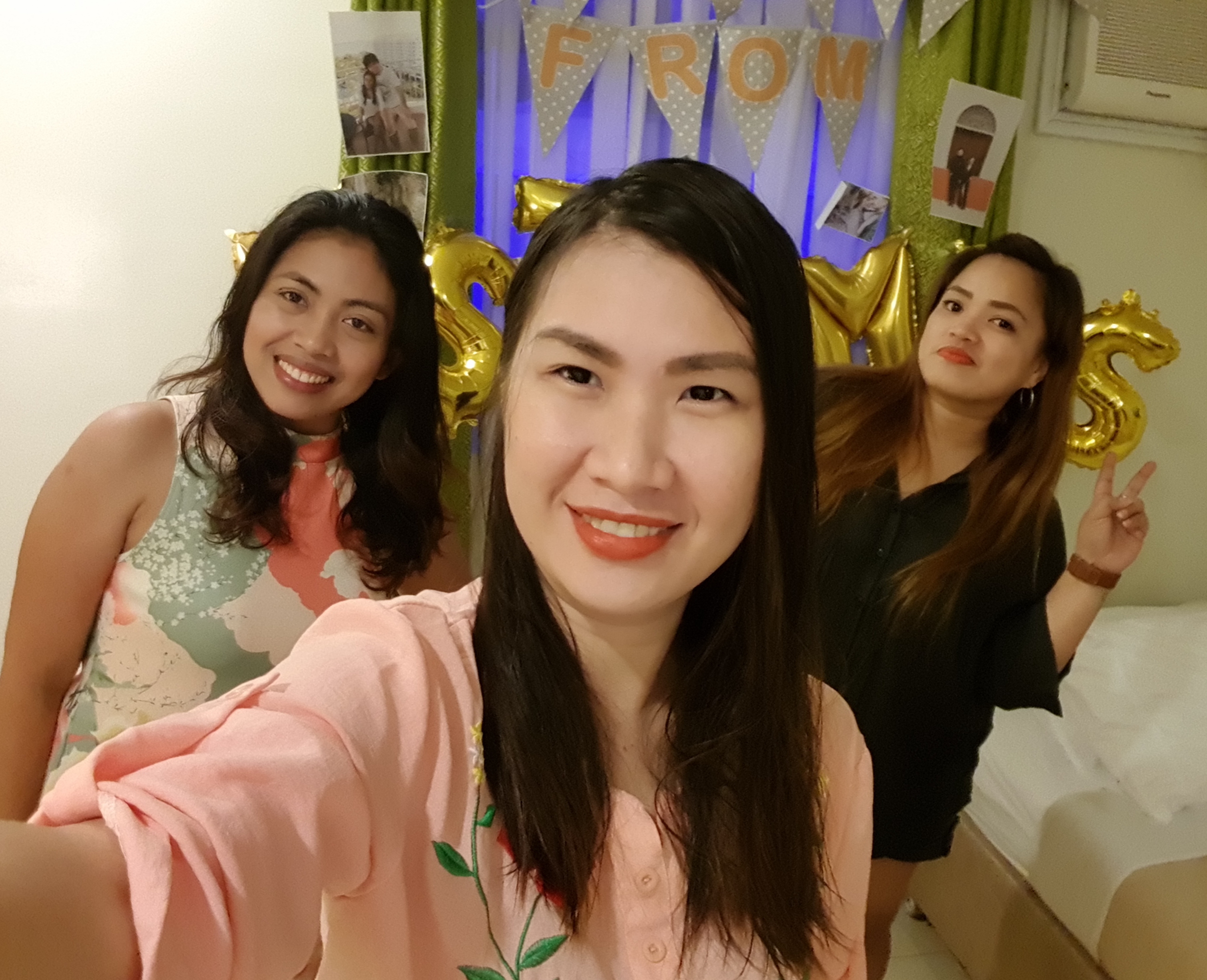 So here I am with my 2 other friends preparing the room for our bridal shower suprise!