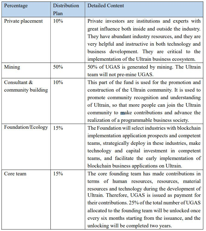 UGas is used to buy the necessary computing power to run smart contracts on Ultrain, similarly to Ethereum gas. All smart contracts deployed on mainchain and sidechains need UGas. Almost every transaction over the Ultrain plattform will lead to a burn of 20% of the spend UGas.