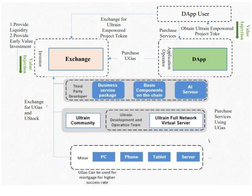 - Dual-layer Token Architecture. Similar to Neo and VChain, Ultrain has adopted the dual-layer token architecture system of UToken and UGas. In Ultrain, Each dApp can issue its own tokens based on Ultrain and also design its own token system as per its business model.