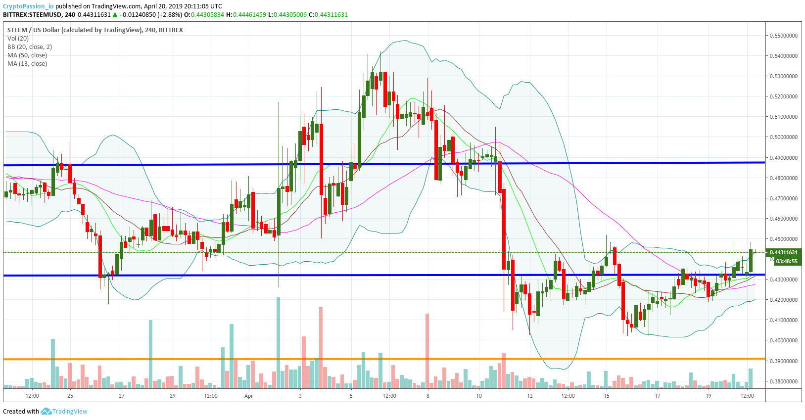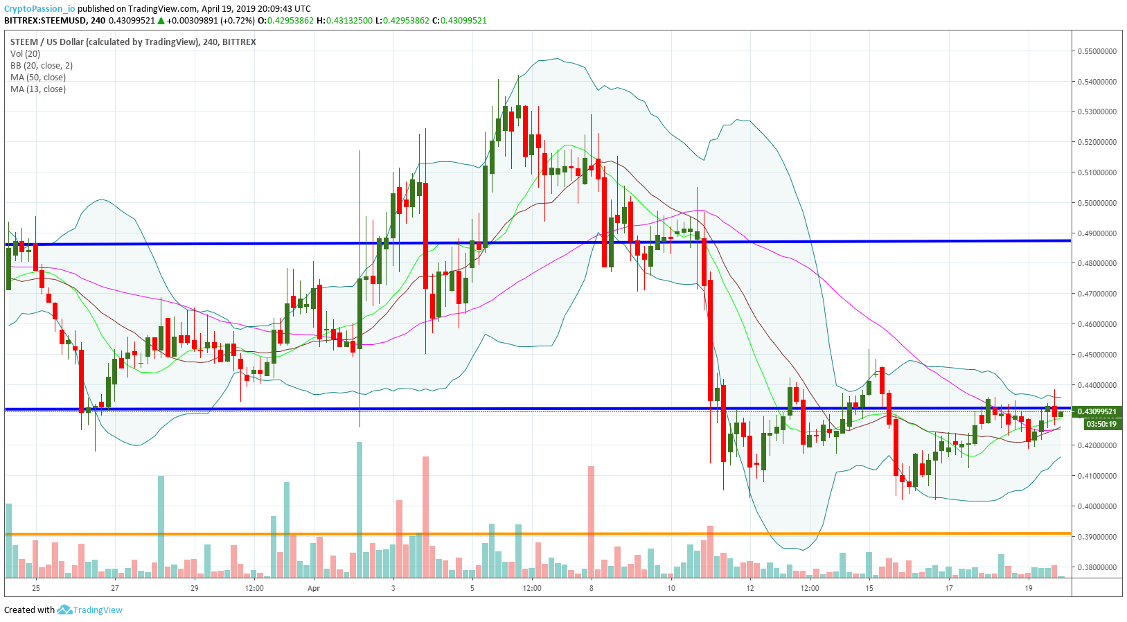 It is now done, STEEM took all its time to do it but we finally broke that resistance line at 0.43$. Look how it created nice green candles as soon as that line has been broken. This is why the use of support and resistance line is usefull to analyse market. Now I would stay very carefull because I suspect that the BTC will do a big move soon and not sure it will be in the good direction. However, enjoy the current UP on our STEEM.