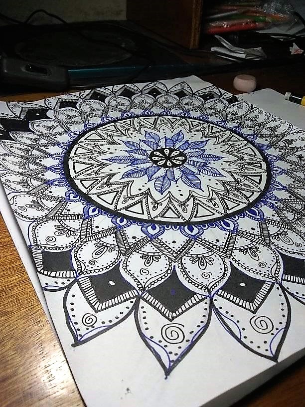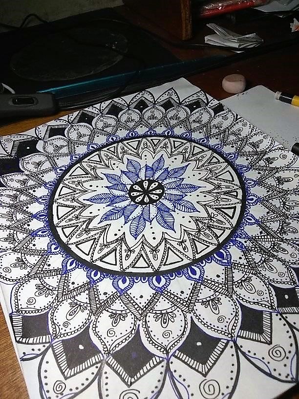 Cabe aclarar que sali de mi zona de confort, por lo que estoy acostumbrado a hacer un borrador al hacer mis dibujos, una de las reglas de hacer este reto fue hacerlo directo desde el marcador por lo que no hay opcion de corregir o borrar algo como en el dibujo, y se logra ver mas errores, sin embargo me vengare cuando nos toque hacer el dibujo jeje, feliz y contento porque a pesar de nunca haber hecho una mandala no me salio tan mal, los buenos de las mandalas es que pude practicar lineas puntos pequeños y semi circulos fundamentales en el dibujo, poco a poco progresando :D
