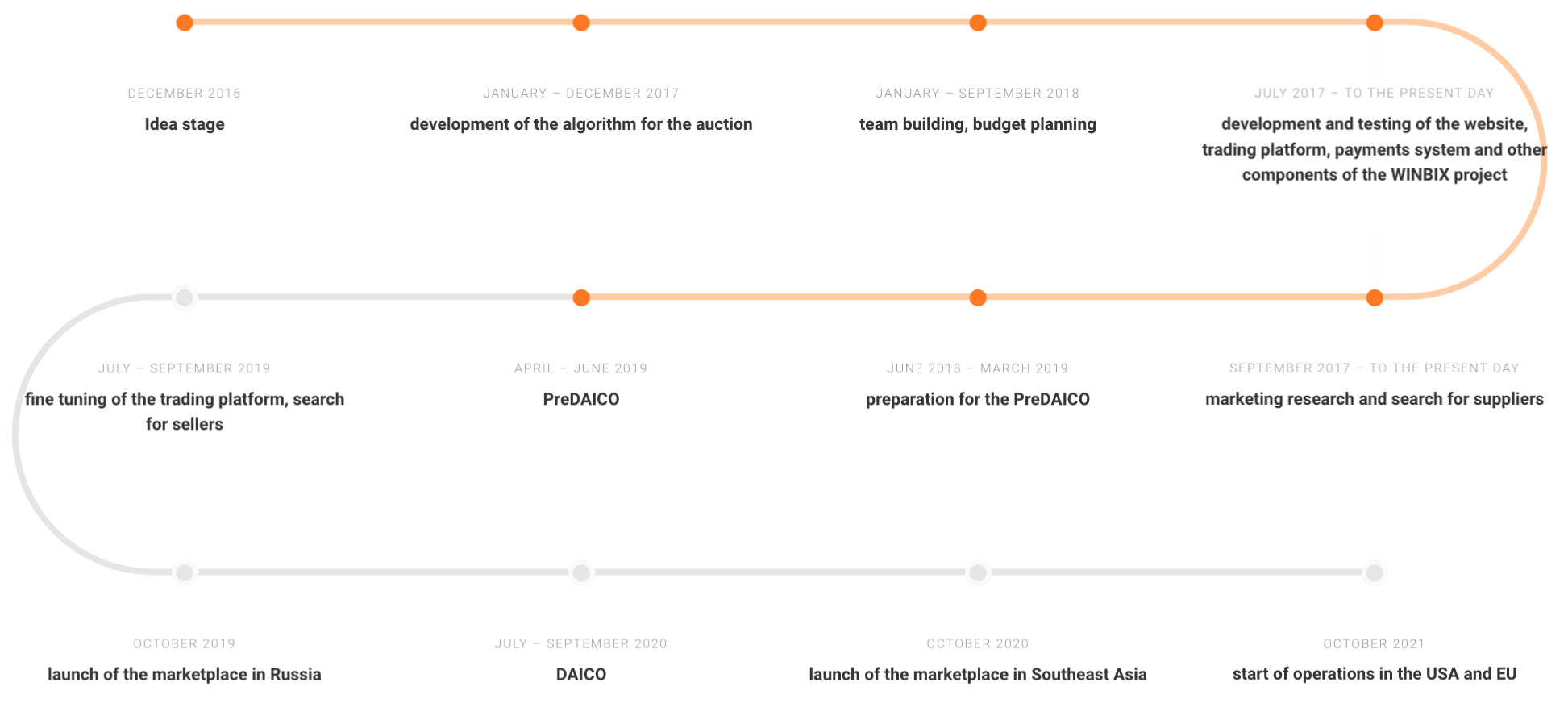 development and testing of the website, trading platform, payments system and other components of the WINBIX project